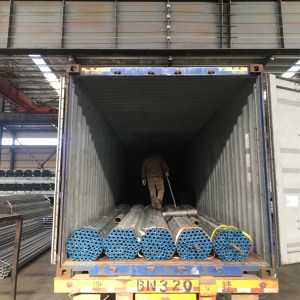 Galvanized steel pipe diameter test Galvanized steel pipe length test  Galvanized steel pipe loaded container